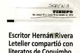 Escritor Hernán Rivera Letelier compartió con literatos en Coquimbo [entrevista]. [artículo]
