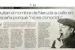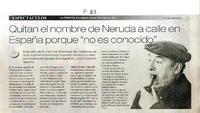 Quitan el nombre de Neruda a calle en España porque "no es conocido". [artículo] La Tribuna (Diario : Los Ángeles, Chile)-- abr. 13, 2012, p. 23. .