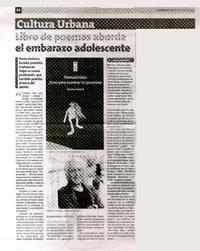 Libro de poemas aborda el embarazo adolescente. [artículo] La Estrella I (Diario : Valparaíso, Chile)-- mar. 5, 2015, p. 20. .