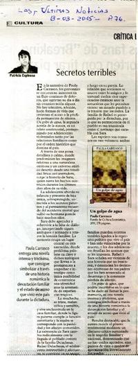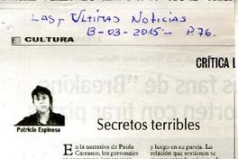 Secretos terribles [artículo] / Patricia Espinosa Las Últimas Noticias (Diario : Santiago, Chile) marzo 13, 2015, p. 76 .