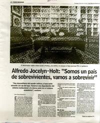 Alfredo Jocelyn-Holt: "Somos un país de sobrevivientes, vamos a sobrevivir" [artículo] / Juan Diego Montalva Las Últimas Noticias (Diario : Santiago, Chile) marzo 15, 2015, p. 18-19 .
