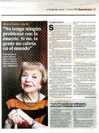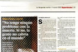 Bélgica Castro, a sus 94 "No tengo ningún problema con la muerte. Si no, la gente no cabría en el mundo [artículo] / Alejandra Valdivieso P. La Segunda (Diario : Santiago, Chile) marzo 17, 2015, p. 25-26 .