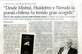 "Desde Mistral, Huidobro y Neruda la poesía chilena ha tenido gran acogida" [artículo] Roberto Carega C.