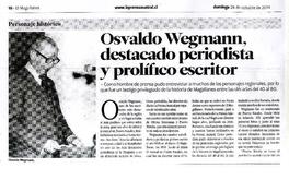 Osvaldo Wegmann, destacado periodista y prolífico escritor. [artículo] El Magallanes (Diario : Punta Arenas, Chile) oct. 26, 2014, p. 10-11 .