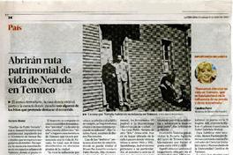 Abrirán ruta patrimonial de vida de Neruda en Temuco [artículo] Javiera Matus.