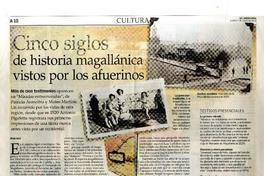 Cinco siglos de historia magallánica vistos por los afuerinos [artículo] / Iñigo Díaz. El Mercurio (Diario : Santiago, Chile)-- jul. 9, 2012, p. A10. .