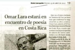 Omar Lara estará en encuentro de poesía en Costa Rica. [artículo] Diario Concepción (Diario : Concepción, Chile)-- abr. 13, 2012, p. 19. .