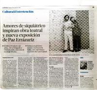 Amores de siquiátrico inspiran obra teatral y nueva exposición de Paz Errázuriz [artículo] / Estefanía Etcheverría. La Tercera de La Hora (Diario : Santiago, Chile)-- jul. 27, 2012, p. 55. .
