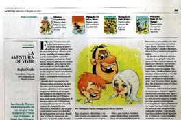 La aventura de vivir [artículo] / Rafael del Valle. La Tercera de La Hora (Diario : Santiago, Chile)-- jul. 25, 2012, p. 39. .