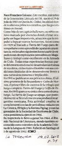 Sección Archivo de Referencias Críticas Chilenas. Coloane, Francisco, 2012.