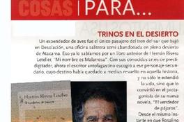 Trinos en el desierto [artículo] / O.S. Cosas (Revista : Santiago, Chile)-- no 986 (jul. 2014), p. 118. .