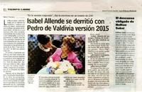 Isabel Allende se derritió con Pedro de Valdivia versión 2015 [entrevista] [artículo] / Sergio Vallejos. Las Últimas Noticias (Diario : Santiago, Chile)-- abr. 9, 2015, p. 40 (suplemento "Tiempo Libre"). .