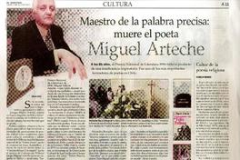 Maestro de la palabra precisa: muere el poeta Miguel Arteche [artículo] Iñigo Díaz.