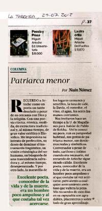 Patriarca menor [artículo] / Naín Nómez. La Tercera (Diario : Santiago, Chile)-- jul. 23, 2012, p. 37. .