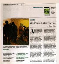 Invitación al recuerdo [artículo] / Oscar Hahn. La Tercera (Diario : Santiago, Chile)-- jul. 23, 2012, p. 37. .
