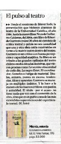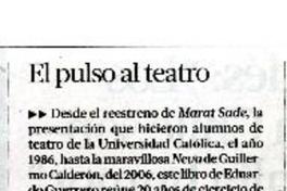 El pulso al teatro. [artículo] La Tercera (Diario : Santiago, Chile)-- jul. 22, 2012, p. 57. .