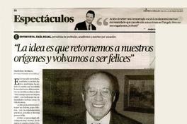 "La idea es que retornemos a nuestros orígenes y volvamos a ser felices" [artículo] Dominique Mesina A.
