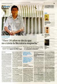 "Hace 20 años se decía que no existía la literatura mapuche" [artículo] / Javier García. La Tercera (Diario : Santiago, Chile)-- mar. 24, 2015, p. 39. .