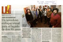 Un novedoso enfoque visual para el legado de don Nicanor. [artículo] / Rodrigo Ortega El Sur (Diario : Concepción, Chile) nov. 7, 2014, p. 23 .