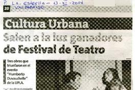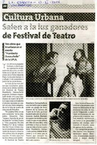 Salen a la luz ganadores de festival de teatro [artículo] La Estrella (Diario : Valparaíso, Chile)-- nov. 13, 2014, p. 20 .