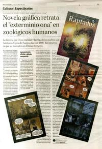 Novela gráfica retrata el "exterminio ona" en zoológicos humanos [artículo] / Mauricio Maldonado Quilodrán. Diario Concepción (Diario : Concepción, Chile)-- abr. 2, 2012, p. 15. .