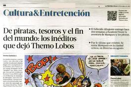 De piratas, tesoros y el fin del mundo: los inéditos que dejó Themo Lobos [artículo] / Denisse Espinoza A. La Tercera (Diario : Santiago, Chile)-- jul. 28, 2012, p. 88. .