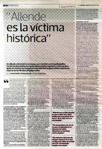 "Allende es la víctima de la historia" [entrevista] [artículo] / Cristián Bofill y Christian Rendic. La Tercera (Diario : Santiago, Chile)-- jul. 28, 2012, p. 8-9 (suplemento "Reportajes") .
