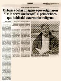 En busca de las imágines que originaron "de la tierra sin fuegos", el primer libro que habló del exterminio indígena [artículo] / Adrián González. El Magallanes (Diario : Punta Arenas, Chile)-- dic. 2, 2012, p. 37-38. .