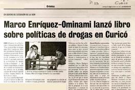 Marco Enríquez-Ominami lanzó libro sobre políticas de drogas en Curicó. [artículo] La Prensa (Diario : Curicó, Chile)-- dic. 16, 2012, p. 23. .