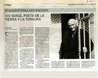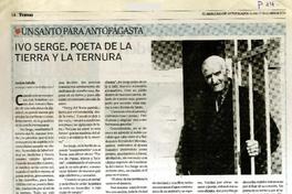 Ivo serge, poeta de la tierra y la ternura [artículo] / Andrés Sabella El Mercurio (Diario : Antofagasta, Chile) oct. 27, 2014, p.14 .