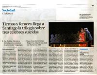 Tiernos y feroces : llega a Santiago la trilogía sobre tres célebres suicidas [artículo] / Pedro Bahamondes Ch. La Tercera (Diario : Santiago, Chile)-- abr. 1, 2015, p. 49. .
