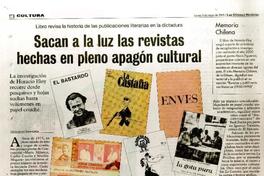 Sacan a la luz las revistas hechas en pleno apagón cultural [artículo] / Leonardo Sanhueza. El Mercurio (Diario : Santiago, Chile)-- mayo 4, 2015, p. 58. .
