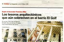 Los tesoros arquitectónicos que aún sobreviven en el barrio El Golf [artículo] / Martín Romero E. La Segunda (Diario : Santiago, Chile)-- mayo 4, 2015, p. 16. .