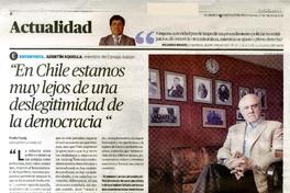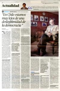 "En Chile estamos muy lejos de una deslegitimidad de la democracia" [artículo] / Paola Passig. El Mercurio (Diario : Valparaíso, Chile)-- mar. 27, 2015, p. 4-5. .