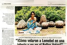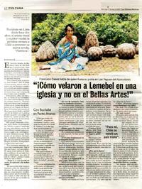 "¡Cómo velaron a Lemebel en una iglesia y no en el Bellas Artes" [entrevista] [artículo] / Jazmín Lolas E. Las Últimas Noticias (Diario : Santiago, Chile)-- mayo 17, 2015, p. 38. .