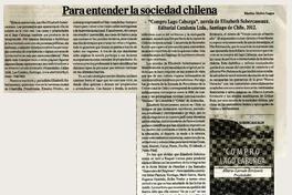Para entender la sociedad chilena [artículo] / Marino Muñoz Lagos. El Magallanes (Diario : Punta Arenas, Chile)-- dic. 16, 2012, p. 13. .