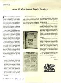 Hace 90 años Neruda llegó a Santiago [artículo] / Edmundo Olivares. Nerudiana (Revista : Santiago, Chile)-- no 11 (ago.-oct. 2011), p. 30. .
