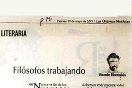Filósofos trabajando [artículo] / Vicente Montañes. Las Últimas Noticias (Diario : Santiago, Chile)-- mayo 29, 2015, p. 76. .