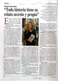 Materias: Autoras chilenas - Carrasco B., Paula - Un golpe de agua - Entrevistas