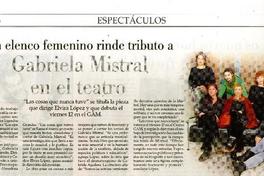 Un elenco femenino rinde tributo a Gabriela Mistral en el teatro [artículo] Eduardo Miranda.