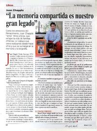 "La memoria compartida es nuestro gran legado" [entrevista] [artículo] / Mario Rodríguez Ordenes. Ercilla (Revista : Santiago, Chile)-- no 3524 (abr. 13, 2015), p. 62. .