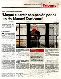 "Llegué a sentir compasión por el hijo de Manuel Contreras" [entrevista] [artículo] / Juan Carlos Ramírez F. Cada Día Mejor (Revista : Santiago, Chile)-- jun. 1, 2015, p. 9. .