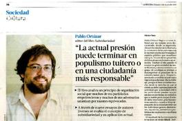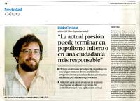 "La actual presión puede terminar en populismo tuitero o en una ciudadanía más responsable" [artículo] / Héctor Soto. La Tercera (Diario : Santiago, Chile)-- mayo 2, 2015, p. 76-77. .