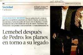 Lemebel después de Pedro: los planes en torno a su legado [artículo] / Pedro Bahamondes Ch. La Tercera (Diario : Santiago, Chile)-- mayo 16, 2015, p. 106-107. .