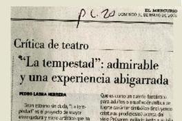 "La tempestad": admirable y una experiencia abigarrada [artículo] Pedro Labra Herrera.