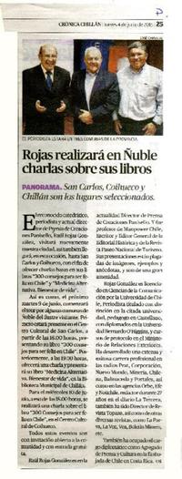Rojas realizará en Ñuble charlas sobre sus libros [artículo]. Crónica Chillán (Diario : Chillán, Chile)-- jun. 4, 2015, p. 25. .
