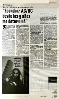"Escuchar AC/DC desde los 9 años me determinó" [entrevista] [artículo] / Vicente Undurraga. The Clinic (Revista : Santiago, Chile)-- no 419 (nov. 10, 2011), p. 29. .