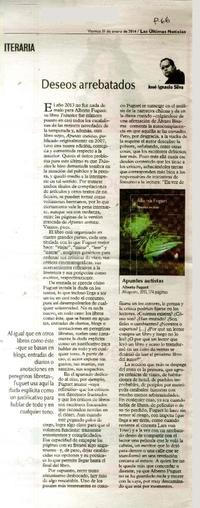 Deseos arrebatados [artículo] / José Ignacio Silva. Las Últimas Noticias (Diario : Santiago, Chile)-- ene. 31, 2014, p. 66. .