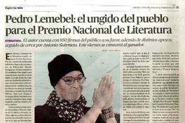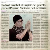 Pedro Lemebel: el ungido del pueblo para el premio nacional de literatura [artículo]. Crónica Chillán (Diario : Chillán, Chile)-- ago. 20, 2014, p. 21. El Mercurio (Diario : Valparaíso, Chile)-- ago. 20, 2014, p. 26. .