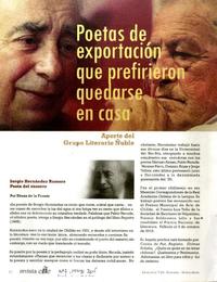Poeta de exportación que prefirieron quedarse en casa [artículo] / Diana de la Fuente. Revista Eñe (Revista : Santiago, Chile)-- no 2 (mayo 2015), p. 14. .